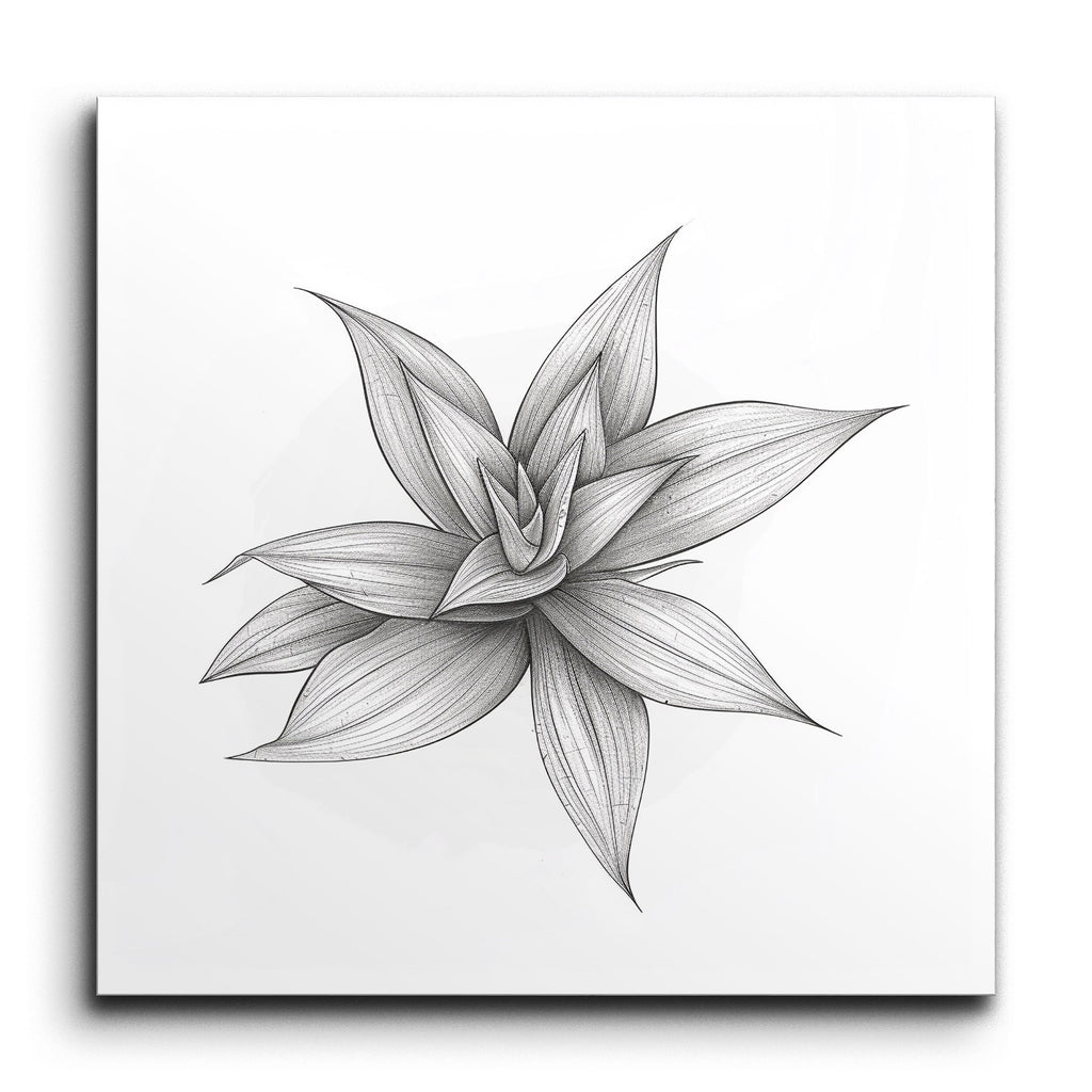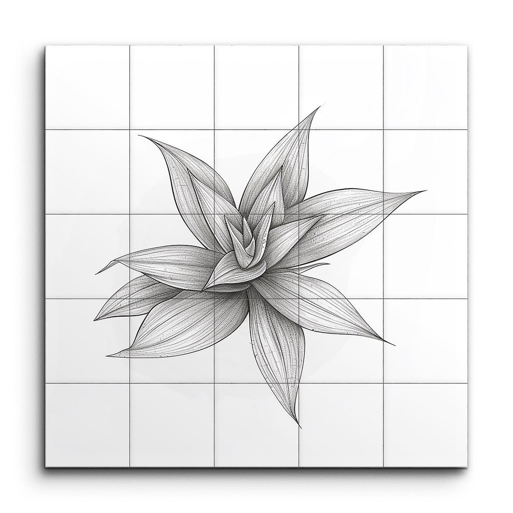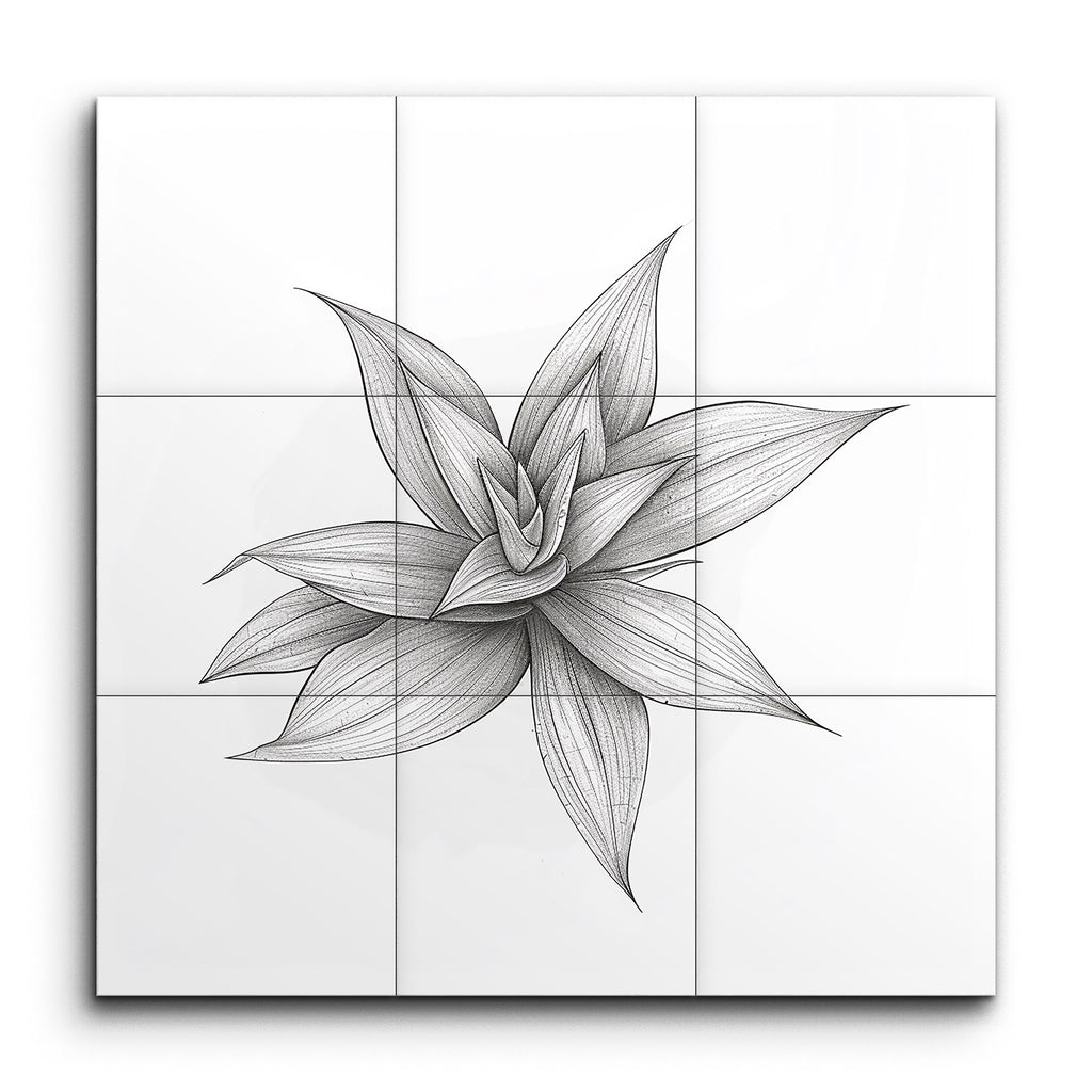 Transformez votre espace avec cette magnifique fresque en carrelage présentant une illustration monochromatique d'une plante succulente, méticuleusement détaillée. L'œuvre dégage précision et complexité, avec des feuilles pointues qui se chevauchent et rayonnent du centre. Des lignes fines et des techniques d'ombrage subtiles créent un effet texturé et tridimensionnel, rappelant les illustrations botaniques classiques. Cette pièce élégante met en valeur la beauté naturelle et la structure de la plante, en faisant un ajout visuellement époustouflant à tout environnement.
