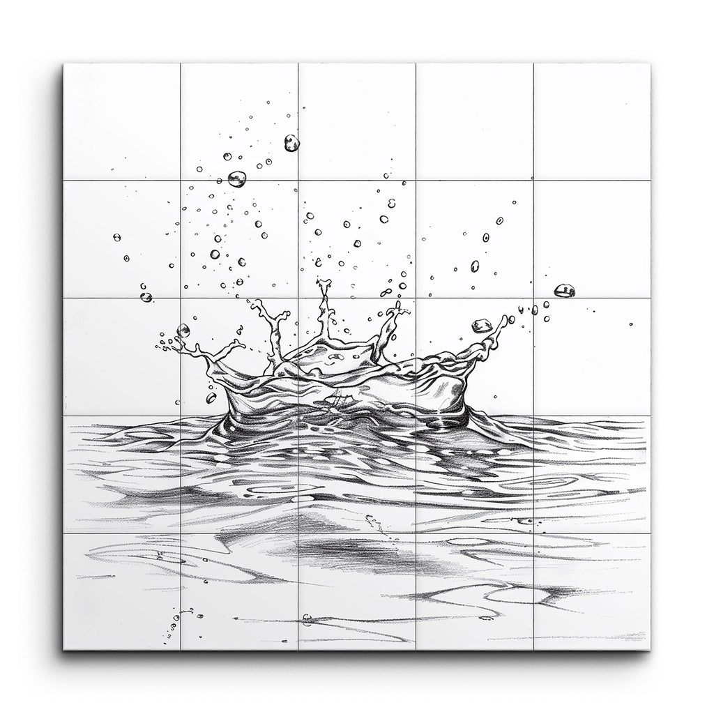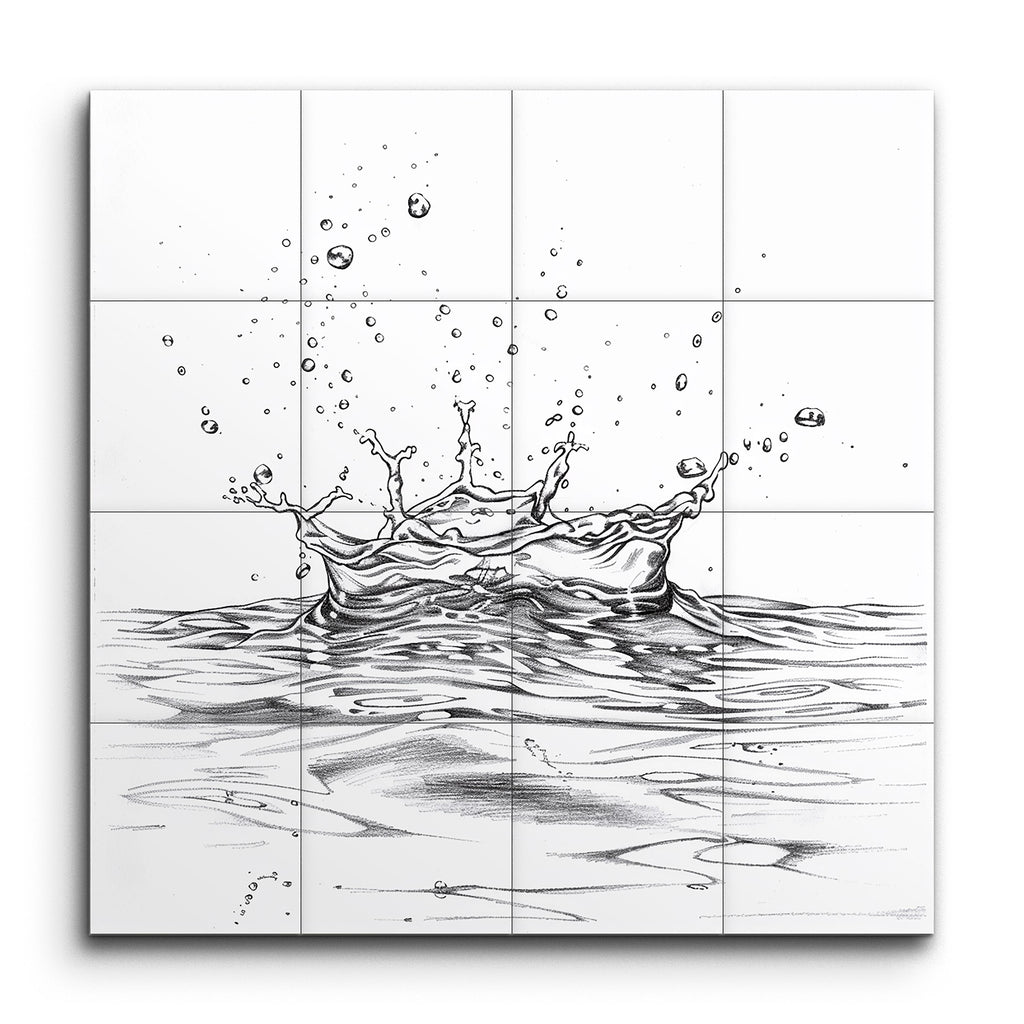 Immergez votre espace dans l'énergie captivante de notre fresque en carreaux, présentant un éclaboussement d'eau richement détaillé figé en plein mouvement. Ce chef-d'œuvre monochromatique, rappelant un dessin à l'encre, capture la beauté dynamique des gouttes s'élevant et des ondulations se propageant. Les lignes nettes et précises ainsi que l'ombrage subtil créent un sentiment de fluidité et de profondeur, transformant un moment fugace en une œuvre d'art intemporelle qui exhale à la fois la spontanéité et la tranquillité.