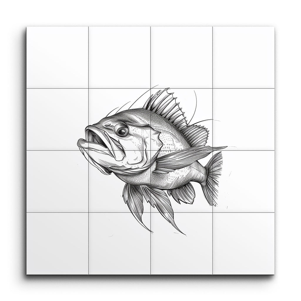 Plongez dans le monde fascinant de l'art aquatique avec cette magnifique fresque en carreaux noir et blanc. Présentant une illustration de poisson méticuleusement détaillée, l'œuvre capture chaque ligne et nuance complexe, mettant en valeur les écailles, les nageoires et les traits du visage avec une précision scientifique. L'angle dynamique du corps du poisson apporte un sens du mouvement, tandis que l'ombrage soigneusement réalisé ajoute de la profondeur et de la tridimensionnalité. En tant que pièce maîtresse captivante, cette fresque est parfaite pour ceux qui apprécient le réalisme et le bel art.
