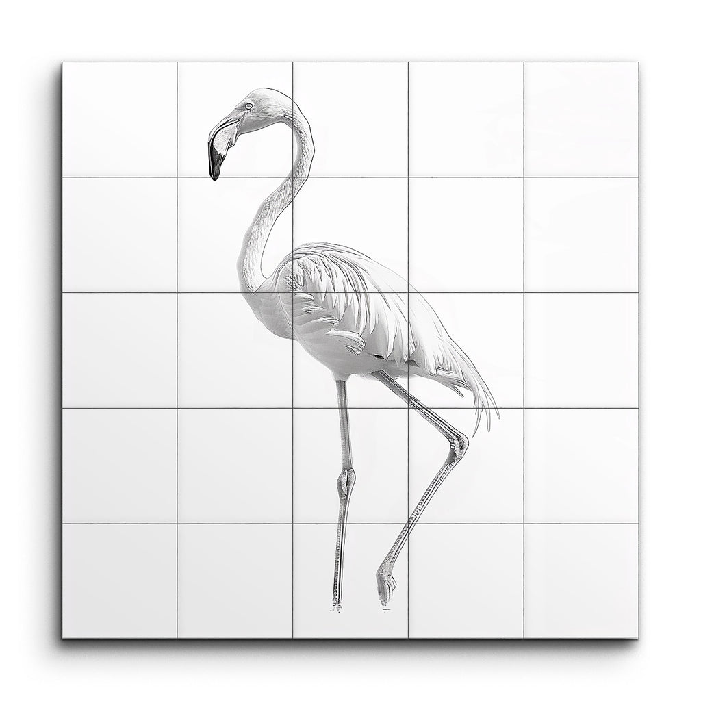 Élevez votre espace avec cette captivante fresque en carreaux, présentant une représentation détaillée et minimaliste d'un flamant rose. Réalisée dans des nuances monochromatiques de noir, blanc et gris, l'œuvre met en valeur les plumes délicates de l'oiseau, ses longues pattes et sa posture gracieuse. Le design élégant capture la beauté naturelle et la sérénité du flamant rose, créant une déclaration visuelle frappante qui allie simplicité et précision. Parfait pour ajouter une touche d'élégance raffinée à tout environnement.