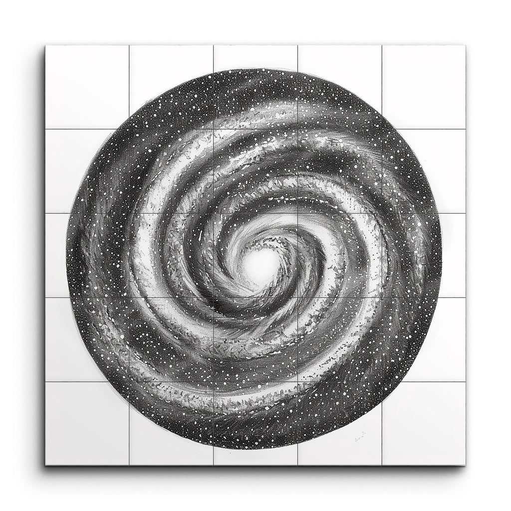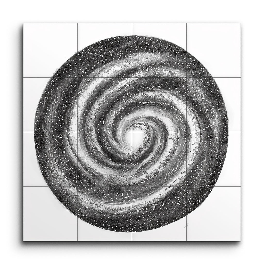 Plongez-vous dans la beauté fascinante du cosmos avec cette fresque en carreaux détaillée représentant une galaxie spirale. Rendu en noir et blanc saisissant, l'œuvre capture le mouvement tourbillonnant des bras spiraux de la galaxie, attirant votre regard vers le noyau lumineux. La texture réaliste de milliers d'étoiles ajoute de la profondeur et de la dimension, créant un effet tridimensionnel. Les bords estompés évoquent un sens de l'espace infini, faisant de cette fresque une pièce intemporelle et méditative qui invite à la contemplation de la complexité de l'univers.