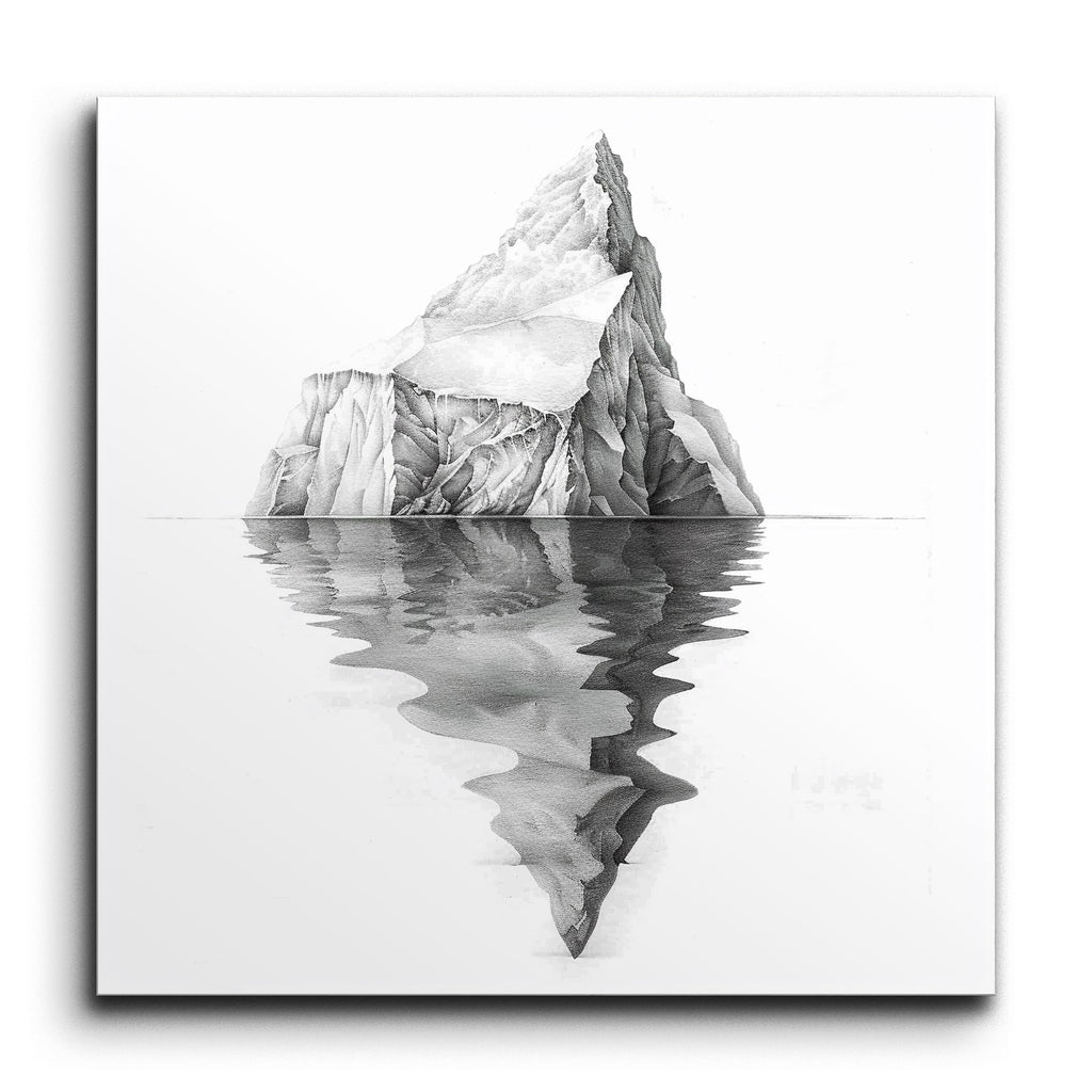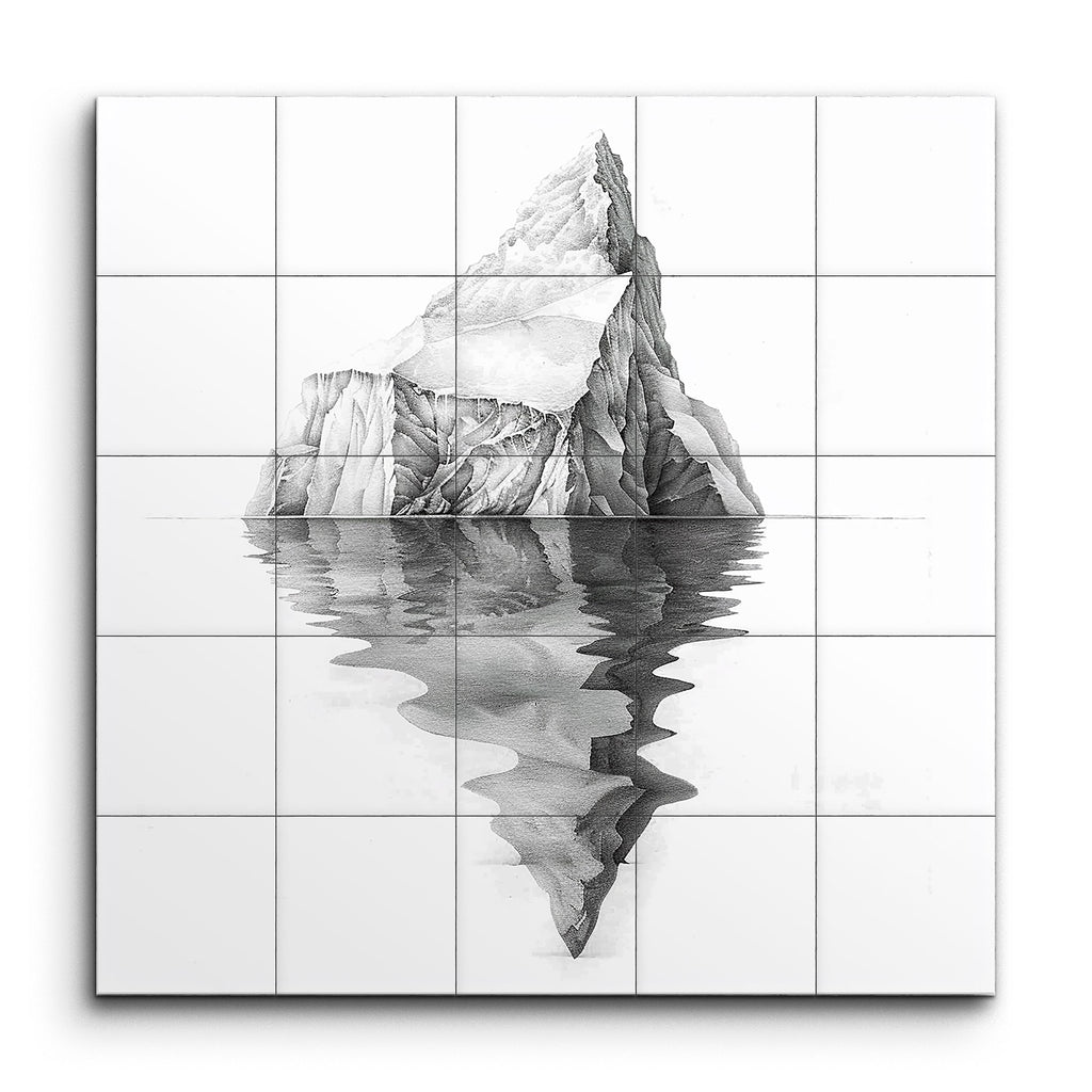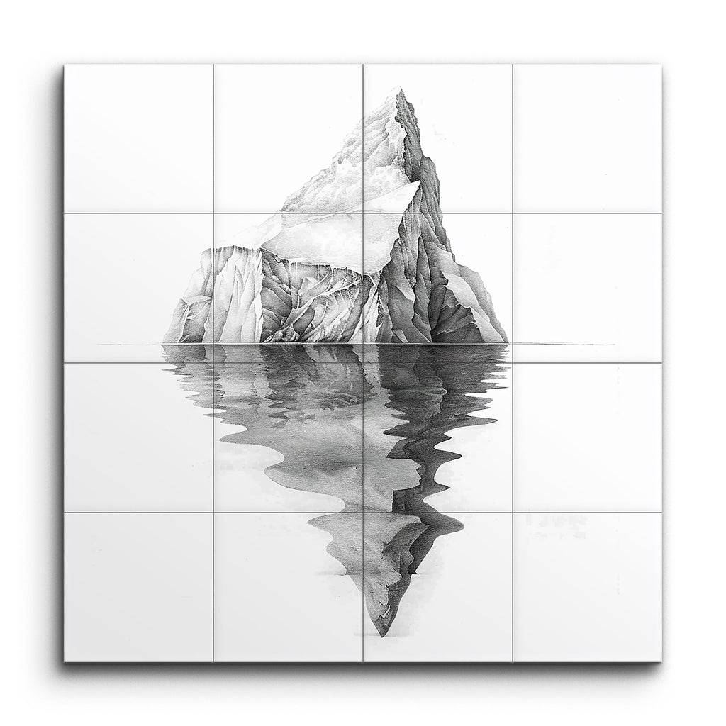 Plongez dans la beauté sereine et le mystère de la nature avec cette magnifique fresque en carreaux d'un iceberg. Rendu dans des nuances monochromatiques de gris, l'œuvre capture la surface rugueuse et texturée de l'iceberg au-dessus de la ligne de flottaison et sa masse cachée plus grande en dessous. Le style de dessin détaillé et réaliste et l'ombrage méticuleux transmettent une apparence tridimensionnelle, tandis que le reflet lisse et légèrement déformé dans l'eau ajoute une touche de mouvement naturel. Cette pièce minimaliste met l'accent sur des contrastes saisissants, créant une expérience visuelle dramatique.