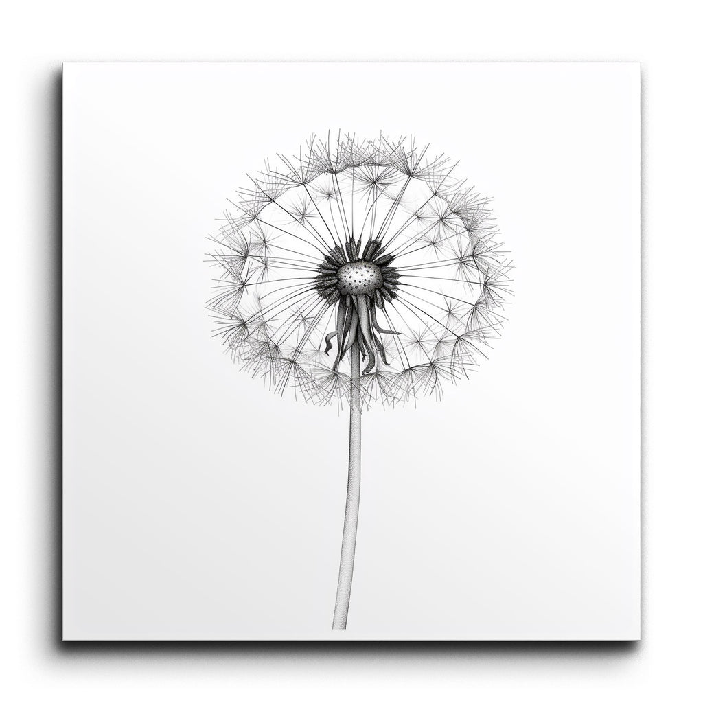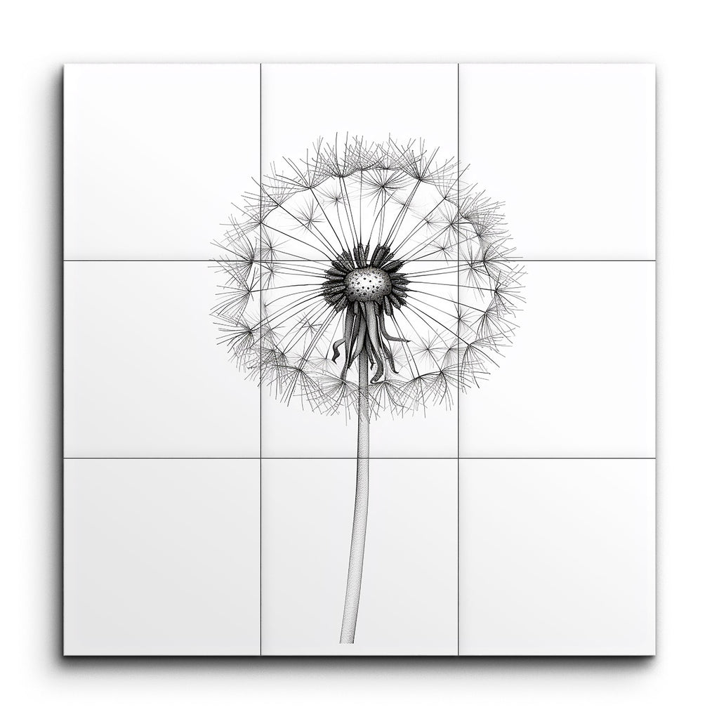 Élevez votre espace avec cette magnifique fresque en carreaux présentant une illustration monochromatique méticuleusement détaillée d'un pissenlit à son stade de semence. Chaque graine est dessinée avec soin, mettant en valeur des structures délicates et duveteuses rayonnant à partir du noyau central, qui est orné de petits points indiquant les points d'attache des graines. La tige élancée s'étend gracieusement, contribuant à un style minimaliste mais hautement détaillé. La palette monochromatique renforce la profondeur, le réalisme et l'élégance intemporelle de l'œuvre.