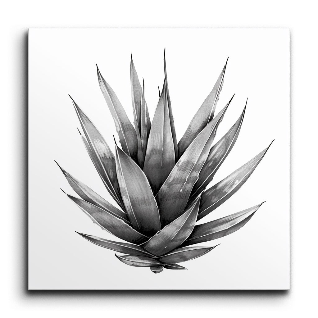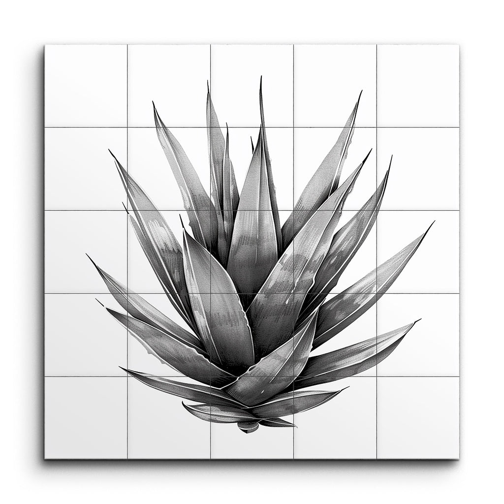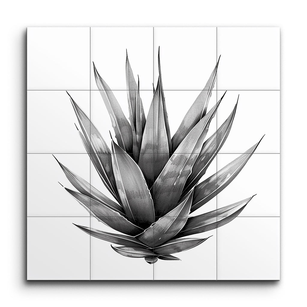Immergez votre espace dans l'élégance botanique avec notre magnifique fresque en carreaux, présentant une représentation captivante en noir et blanc d'un succulent agave. Cette œuvre d'art très détaillée met en valeur des feuilles allongées et pointues disposées en un motif radial, rayonnant du centre avec des ombrages et des détails texturaux complexes. La palette monochromatique accentue le contraste entre la lumière et l'ombre, mettant en avant la forme naturelle de la plante avec un réalisme saisissant. Parfait pour ajouter une touche de sophistication minimaliste à tout environnement.