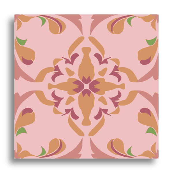 Deze decoratieve tegel toont een prachtig symmetrisch encaustisch patroon, gekenmerkt door zijn ingewikkeld ontwerp en zachte, gedempte kleuren. Het palet van beige, lichtgrijs en bleekgroen vloeit naadloos samen om een elegante en harmonieuze uitstraling te creëren. Bloem- en bladmotieven grijpen in elkaar in een cirkelvormige opstelling, wat een klassieke en tijdloze uitstraling biedt. Met zijn subtiele rondingen en delicate details straalt deze tegel verfijning en elegantie uit, waardoor het een perfecte keuze is om een vleugje ingetogen elegantie aan elke ruimte toe te voegen.