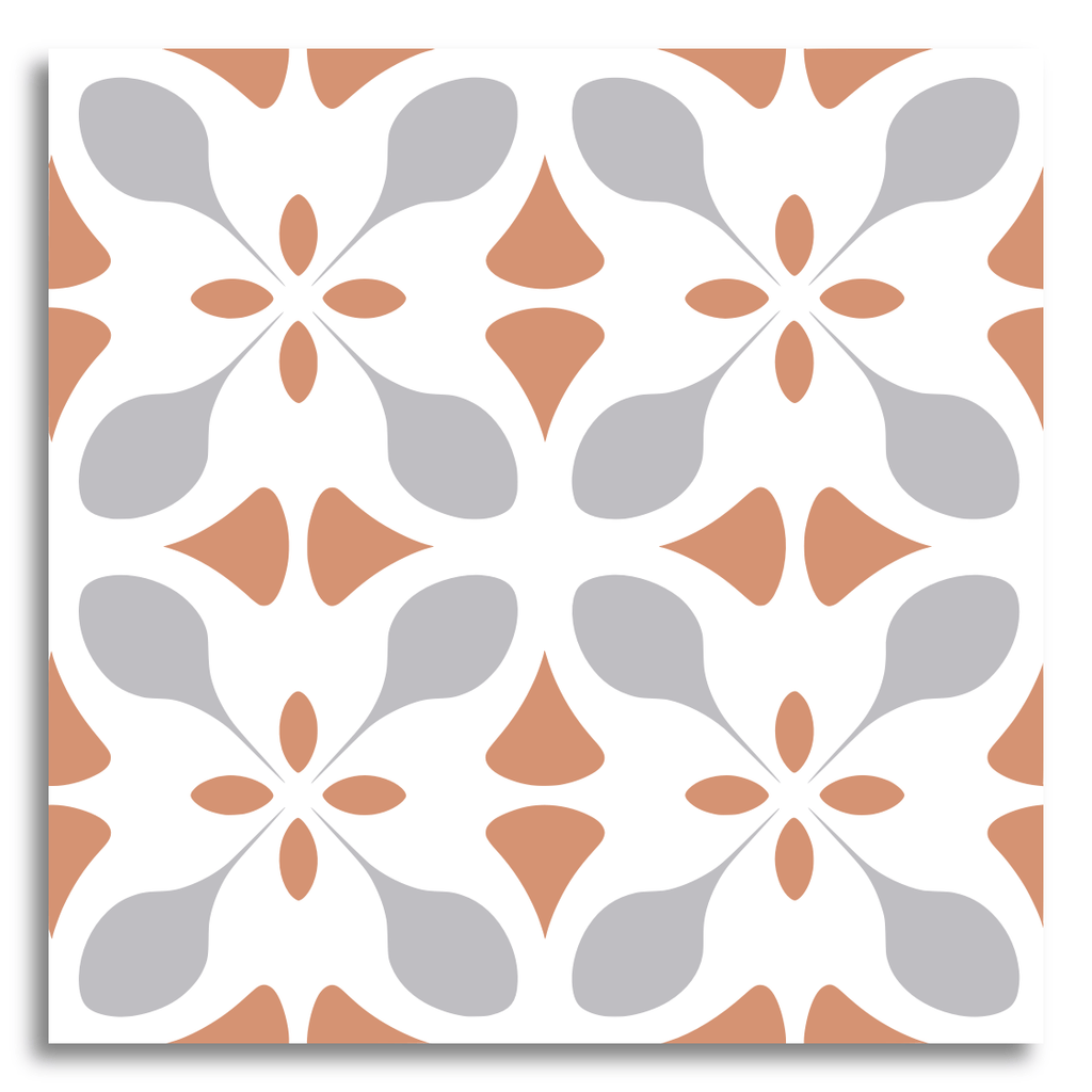 Diese Dekorfliese zeigt ein klassisches Enkaustikmuster, das florale und geometrische Motive mit tropfenförmigen und blütenblattähnlichen Formen vereint. Die gedämpften Blau- und Terrakottatöne auf einem sanften weißen Hintergrund schaffen ein harmonisches Gleichgewicht und bieten eine zeitlose, aber moderne Ästhetik. Ihr komplexes Design ist vielseitig und ergänzt nahtlos eine Vielzahl von Einrichtungsstilen.