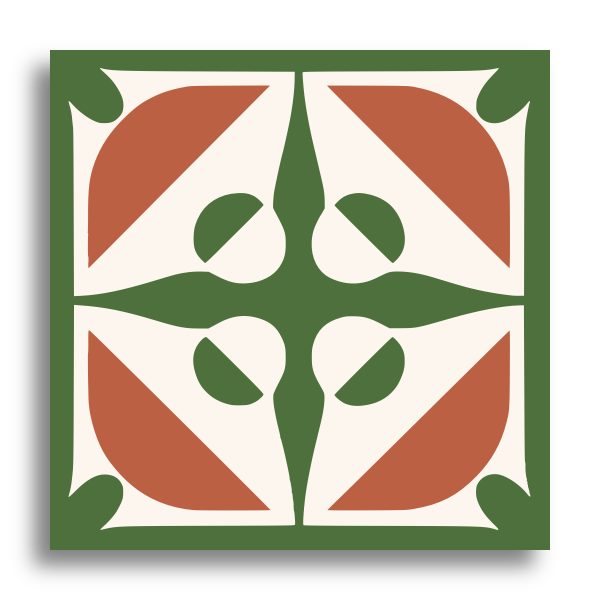 This decor tile showcases a beautifully intricate encaustic pattern, where symmetrical geometric designs come to life with a central motif that repeats seamlessly. Soft, curved shapes blend with sharp angles, creating a captivating visual harmony. The warm orange, muted blue, and creamy white color palette offers a timeless look that bridges classic charm with a modern twist. Ideal for adding a touch of elegance to any space, this tile is reminiscent of traditional decorative flooring and wall applications, celebrated for their vibrant colors and detailed artistry.