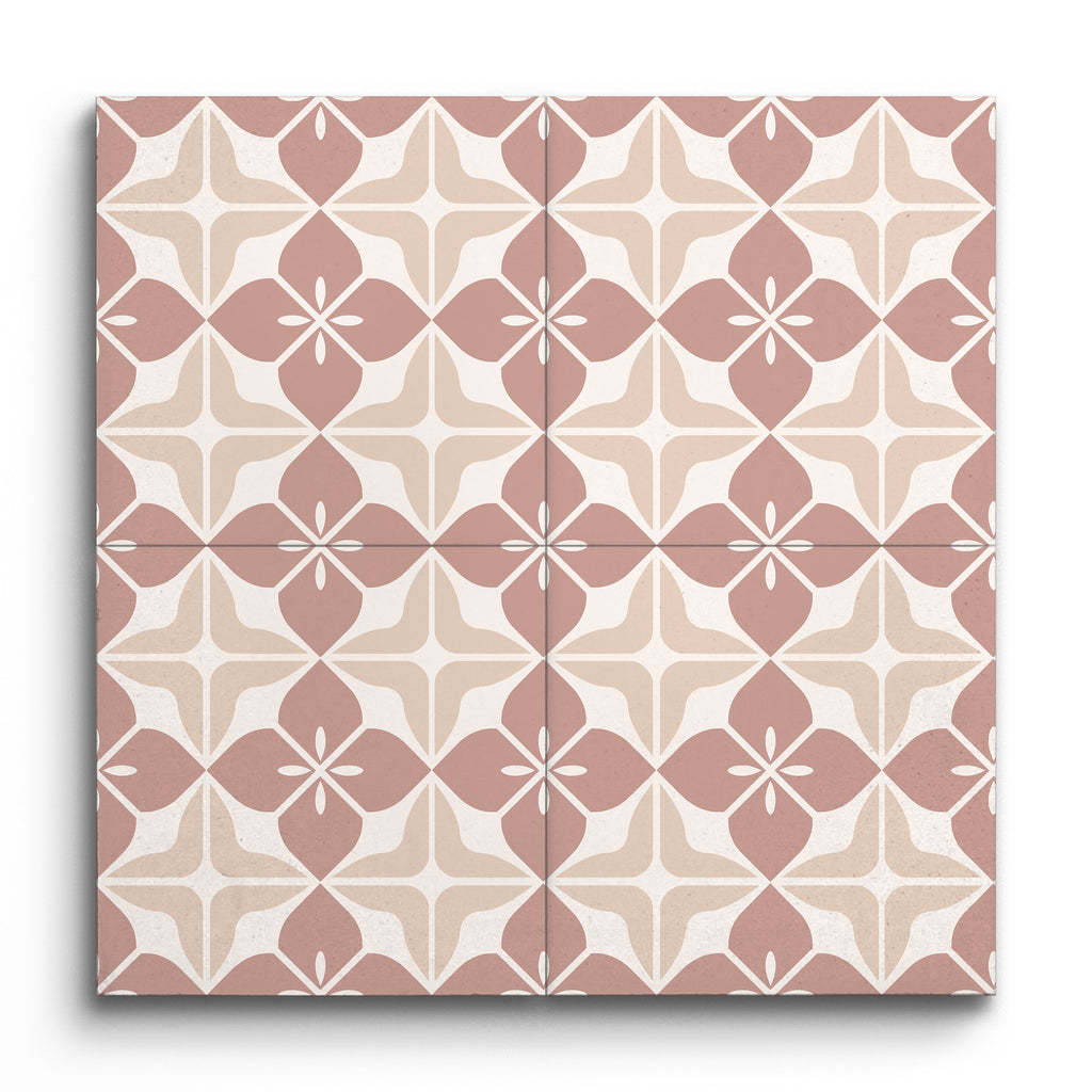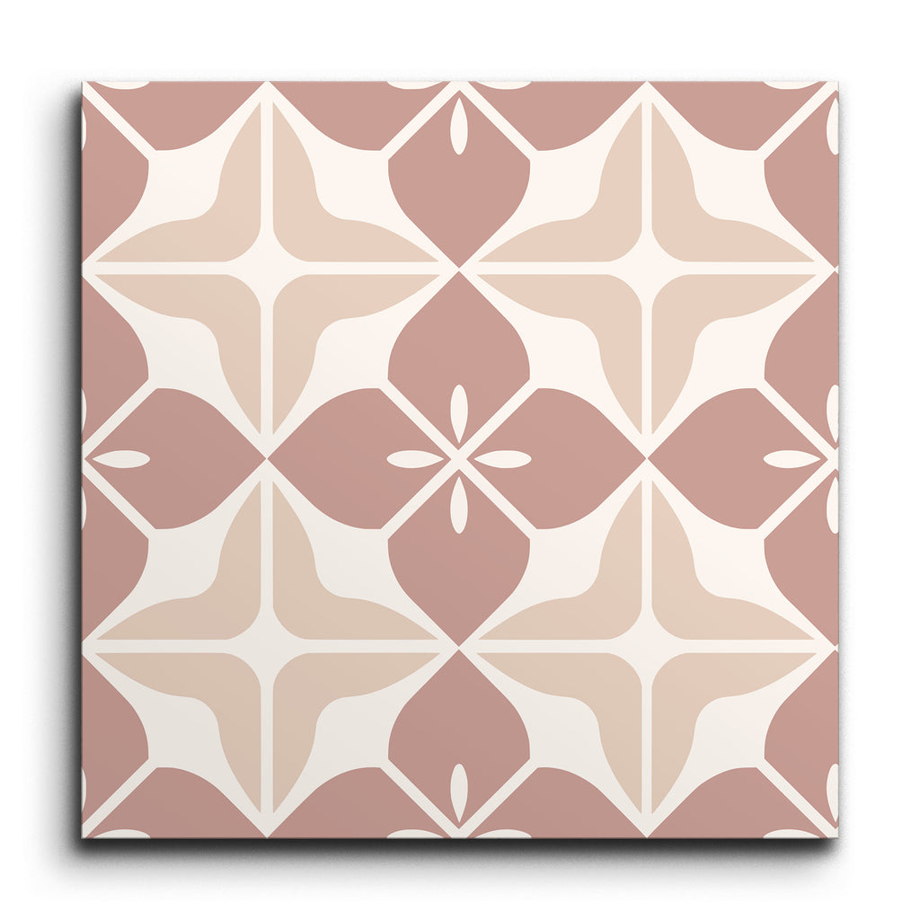Ce carreau décoratif présente un design géométrique enchanteur qui apporte une touche artistique à tout espace. Ses formes symétriques forment un motif harmonieux, rehaussé par une palette de tons beige et rose doux. Des accents blancs délicats offrent un contraste subtil, ajoutant profondeur et définition au motif. Le style encaustique capture l'essence de l'artisanat traditionnel, tandis que les couleurs subtiles apportent une touche contemporaine. L'esthétique élégante et intemporelle de ce carreau en fait un choix polyvalent pour divers environnements intérieurs.